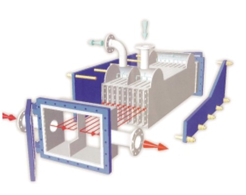 在国内冶金、酒精等行业中部分工艺段的运行介质含有大量固体颗粒与纤维悬浮物以及粘稠状物料,为有效防止介质中固体颗粒物或悬浮物的沉积、堵塞通道、磨损传热元件等现象的发生,实现大处理量、高传热效率、高耐压耐温耐磨能力、低阻力损失的换热要求。公司依靠雄厚的技术实力和多年板式换热器开发的经验,成功研制了全焊式宽通道板式换热器。
