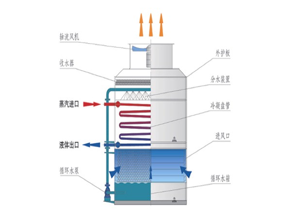 蒸发式冷凝器是利用管外水膜蒸发带走管内乏汽凝结放出热量的—种节能、节水型设备。
