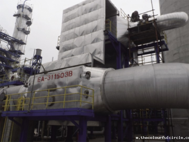 金山石化安装中的热管换热器热管及有效传热技术集先进的抗低温露点腐蚀技术,将加热炉排烟温度降到100℃-80℃,回收烟气余热用以加热助燃空气,使炉效提高到93%以上。